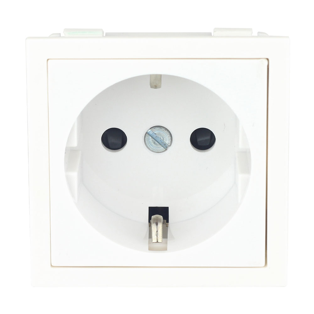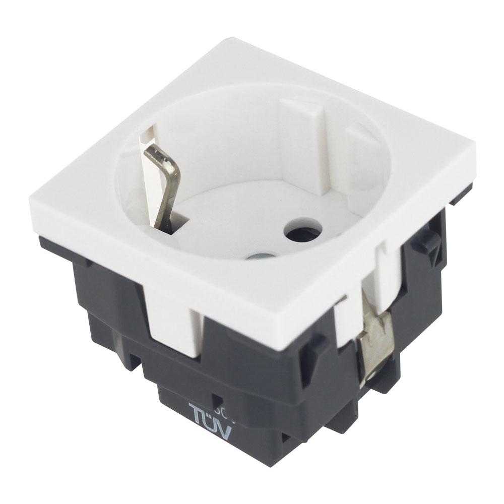 歐規電源插座 產品尺寸:45X45X40mm 安裝尺寸:40.5X40.5mm 帶框尺寸:54X54X40mm 安裝尺寸:50X48mm 可卡面板厚度:0.8-3.5mm 適用地區:德國、波蘭、印尼、韓國等。