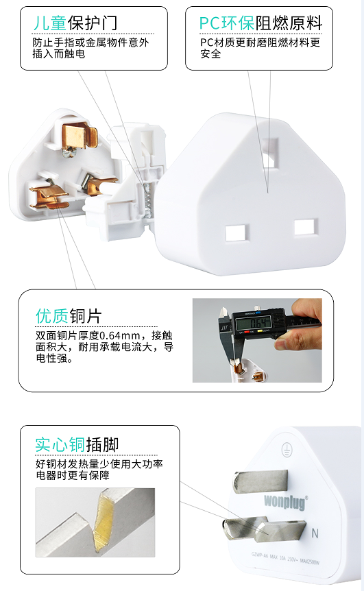 5.插頭插座邊距參照安規要求,有效降低觸電隱患。